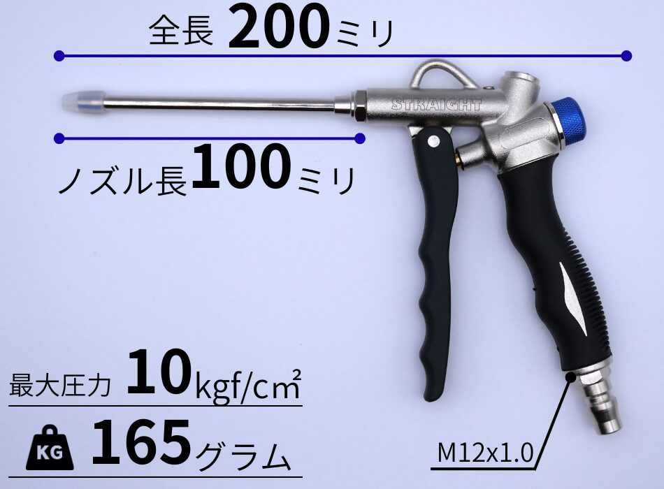 ノズル長は100mm、重量165gと軽量な設計です