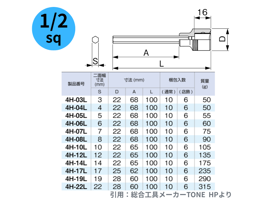 サイズ展開(1/4sq,3/8sq,1/2sq)