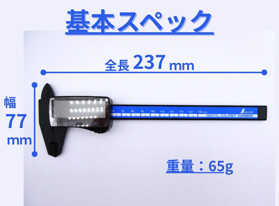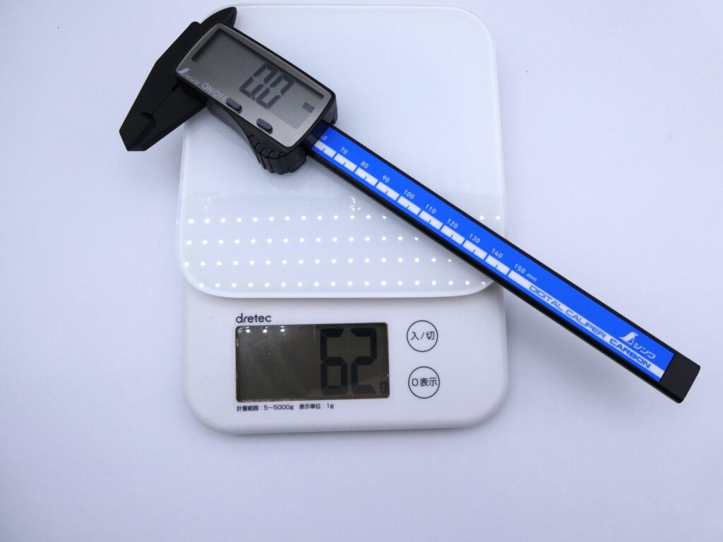 重量は65gと軽量さが特徴のノギス