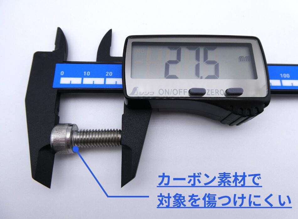 まず、軽くて疲れにくいのはカーボンノギスの特長