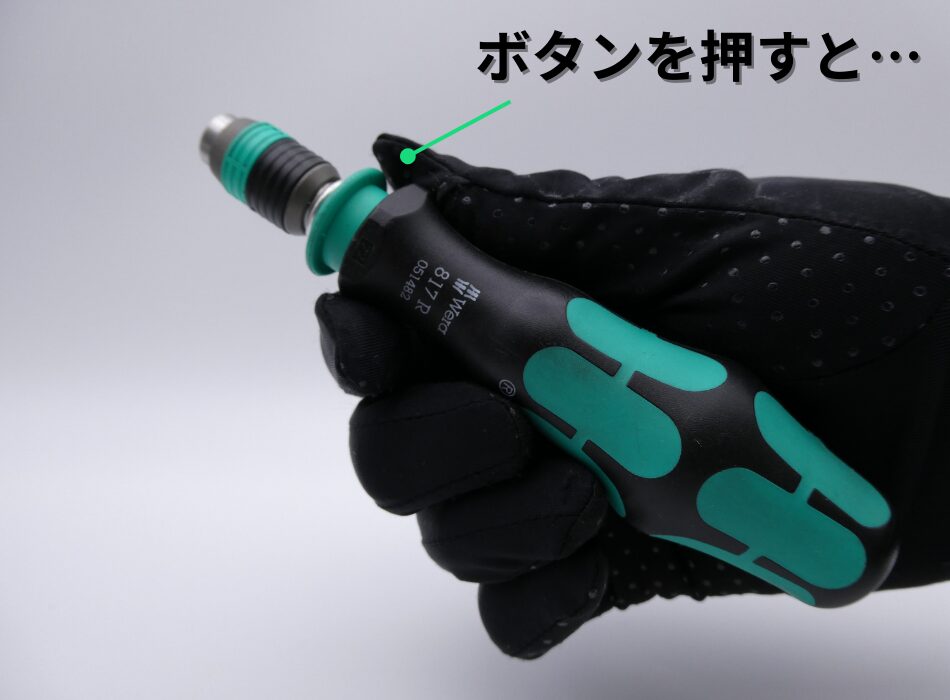 先端のスリーブを押し下げることでビット固定
