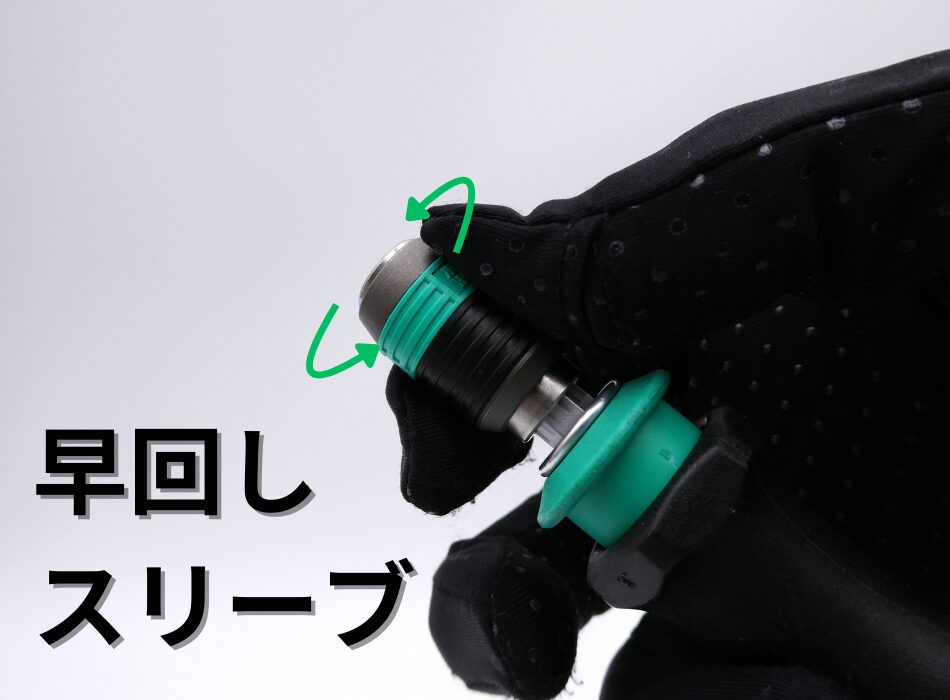 スリーブでネジを抑えつつ、グリップで早回しができるのは