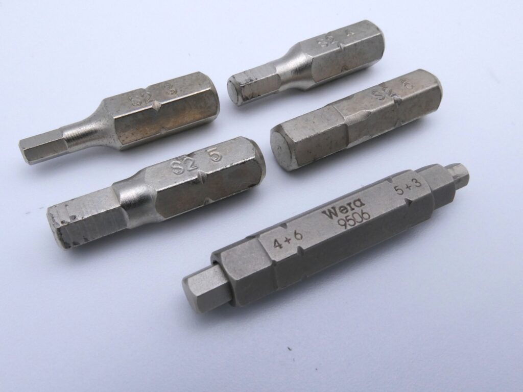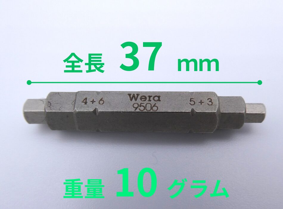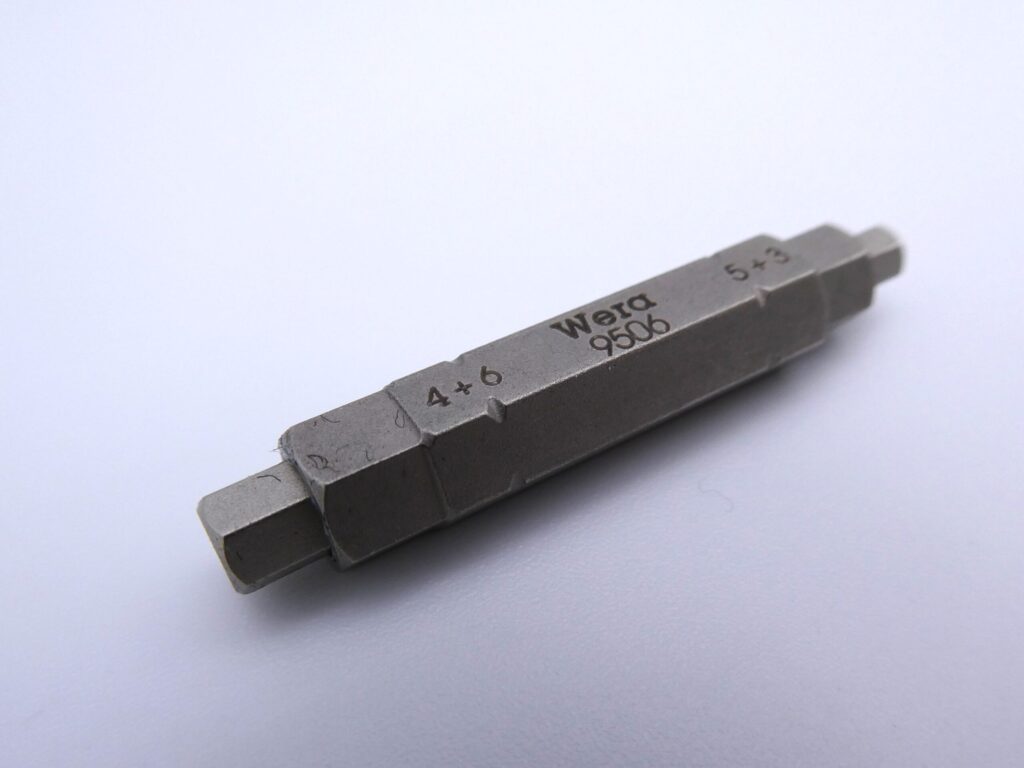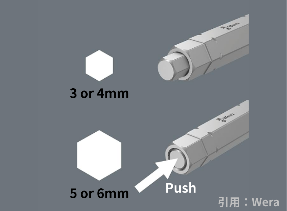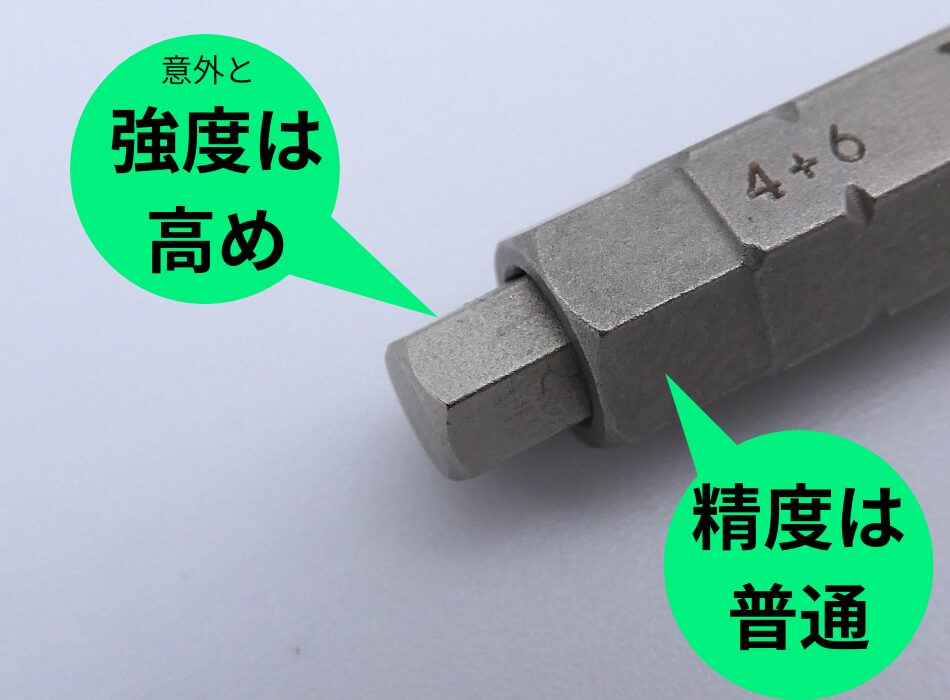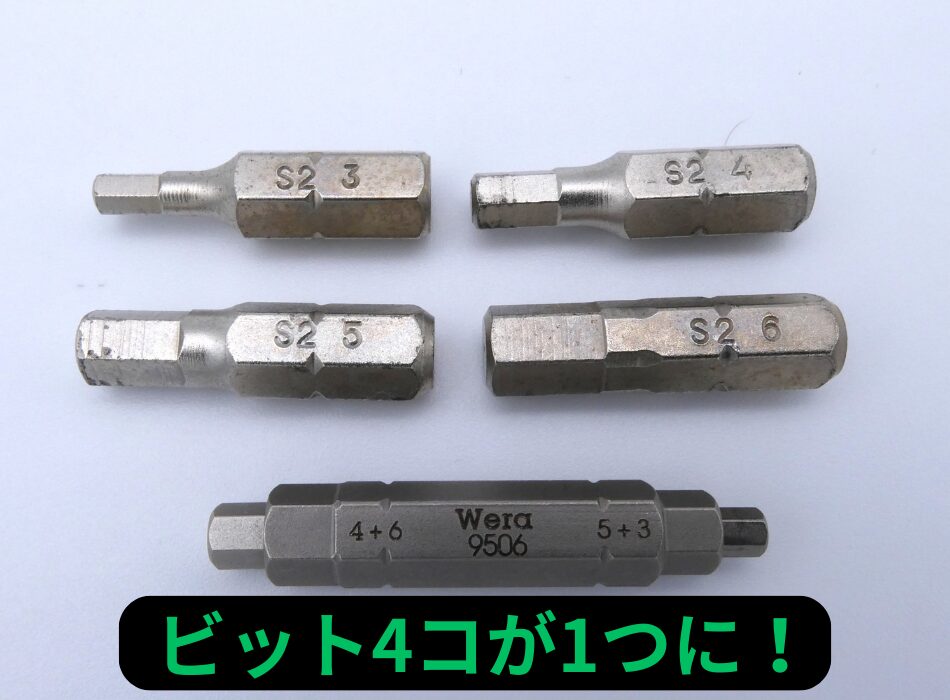このビットは、1コで4サイズのヘックスに対応できる工具