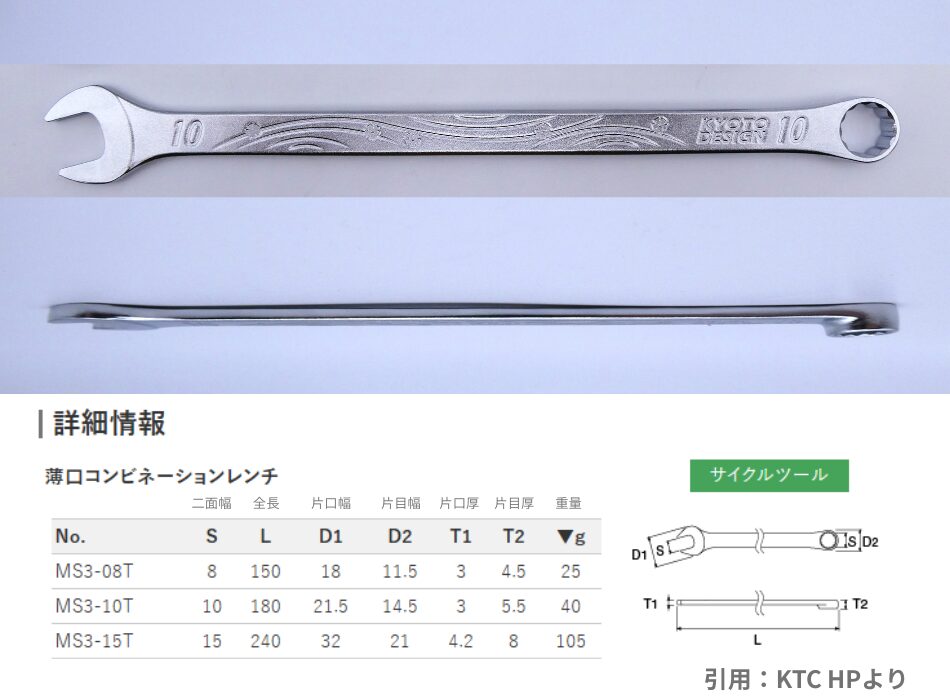 『薄口コンビネーションレンチ MS3-10T』