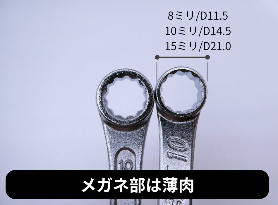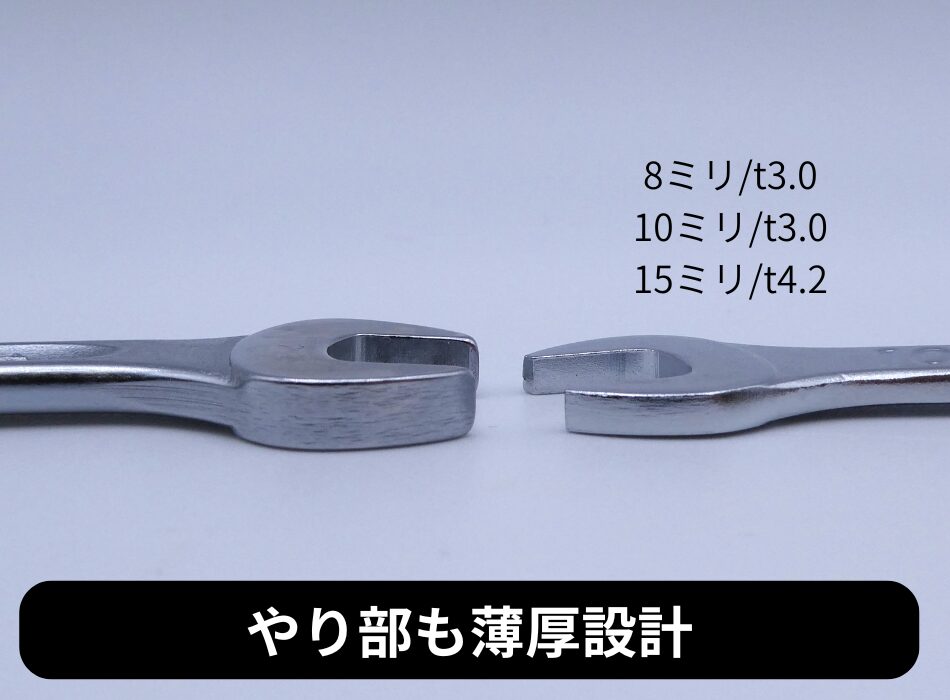 厚みは一般的なレンチよりも2~30%薄く設計されつつも、