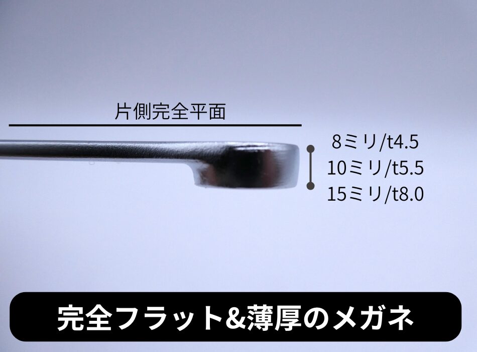 メガネ部は厚みと肉厚の両方が薄い設計